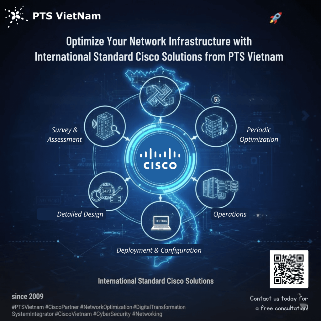 Nếu bạn đang tìm kiếm nhà phân phối Cisco uy tín, đại lý Cisco Việt Nam chuyên nghiệp tại TP.HCM hoặc cần mua thiết bị Cisco chính hãng, cung cấp giải pháp Cisco toàn diện – hãy liên hệ ngay với PTS Vietnam để nhận tư vấn miễn phí và báo giá tốt nhất! Chúng tôi cam kết đồng hành cùng doanh nghiệp Việt Nam trong hành trình chuyển đổi số bền vững.